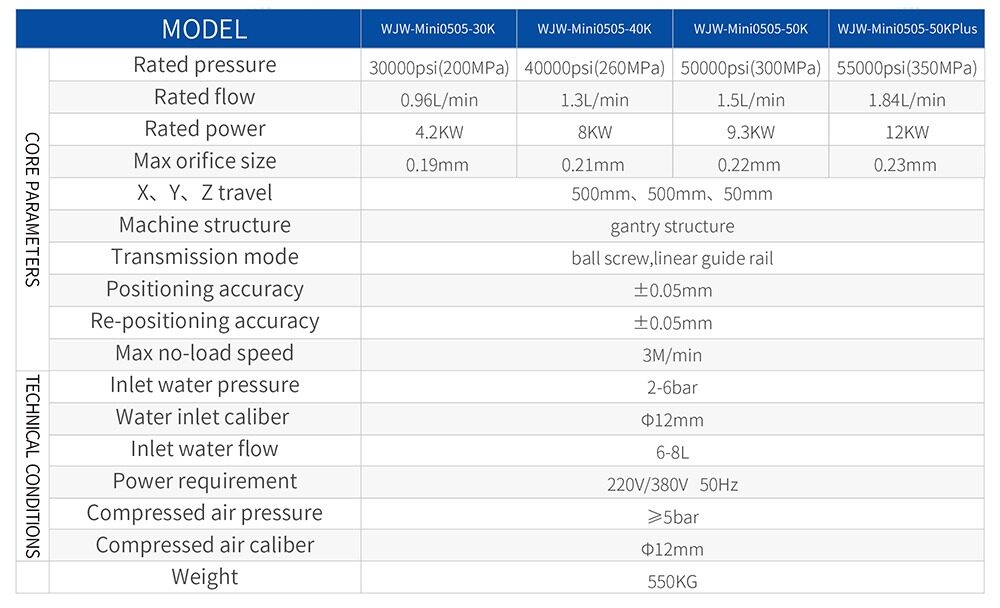 The ForPlus Mini Waterjet is a mobile and all-in-one waterjet cutting machine.It could be your entry level of high pressure waterjet cutting machines, also giving you flexibility to cut in limited workspace or relocate the machine to where is needed.with conventional 220V/380V AC power to perform rapid waterjet cutting at pressures ranging from 30000psi-55000psi (200-350MPa).